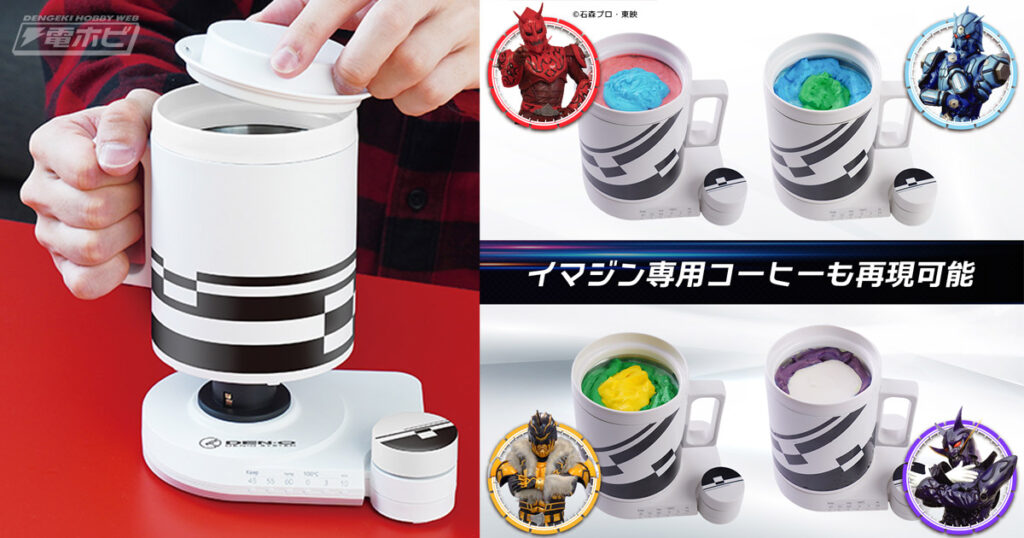 A chaleira reproduz o design do copo utilizado no vagão-restaurante do DenLiner, o trem temporal que acompanha o protagonista Ryotaro (Takeru Satoh) ao longo da série. Além da fidelidade visual, o item funciona como uma caneca elétrica totalmente funcional, com modos de aquecimento que permitem ferver água, manter a temperatura, preparar infusões e aquecer água de forma mais suave. A ideia é que o fã possa preparar desde café até chá ou sopas com praticidade.