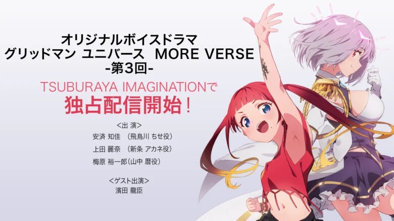 A franquia Gridman Universe (グリッドマン ユニバース, 2023) acaba de expandir oficialmente seu universo com o lançamento do terceiro episódio do drama em áudio inédito Gridiman Universe MORE VERSE (グリッドマン ユニバース MORE VERSE, 2025). A produção, distribuída mensalmente pela plataforma Tsuburaya Imagination desde dezembro de 2025, integra um conjunto de cinco histórias originais roteirizadas por Yume Mizusawa.
