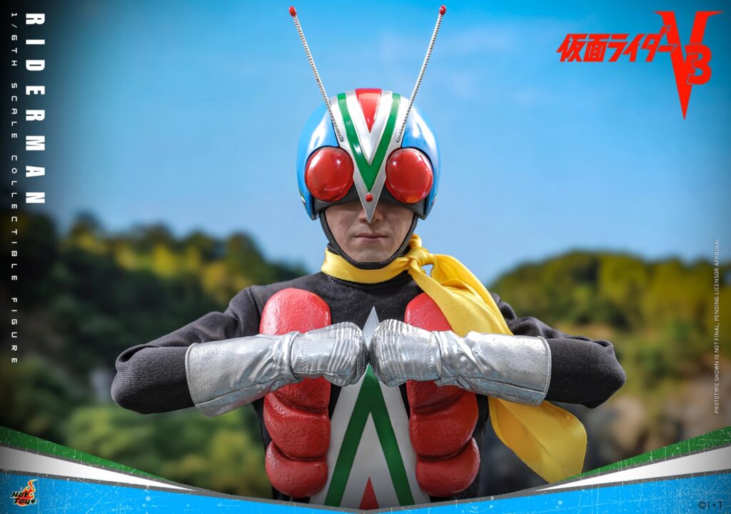 A figura, com aproximadamente 30 cm de altura, se destaca pelo alto nível de detalhamento e fidelidade. O modelo foi desenvolvido para reproduzir com precisão a aparência de Riderman conforme vista na série exibida entre 1973 e 1974, Kamen Rider V3 (仮面ライダーV3). O colecionável conta com uma escultura de cabeça que recria a imagem do ator Takehisa Yamaguchi no papel de Joji Yuki.
