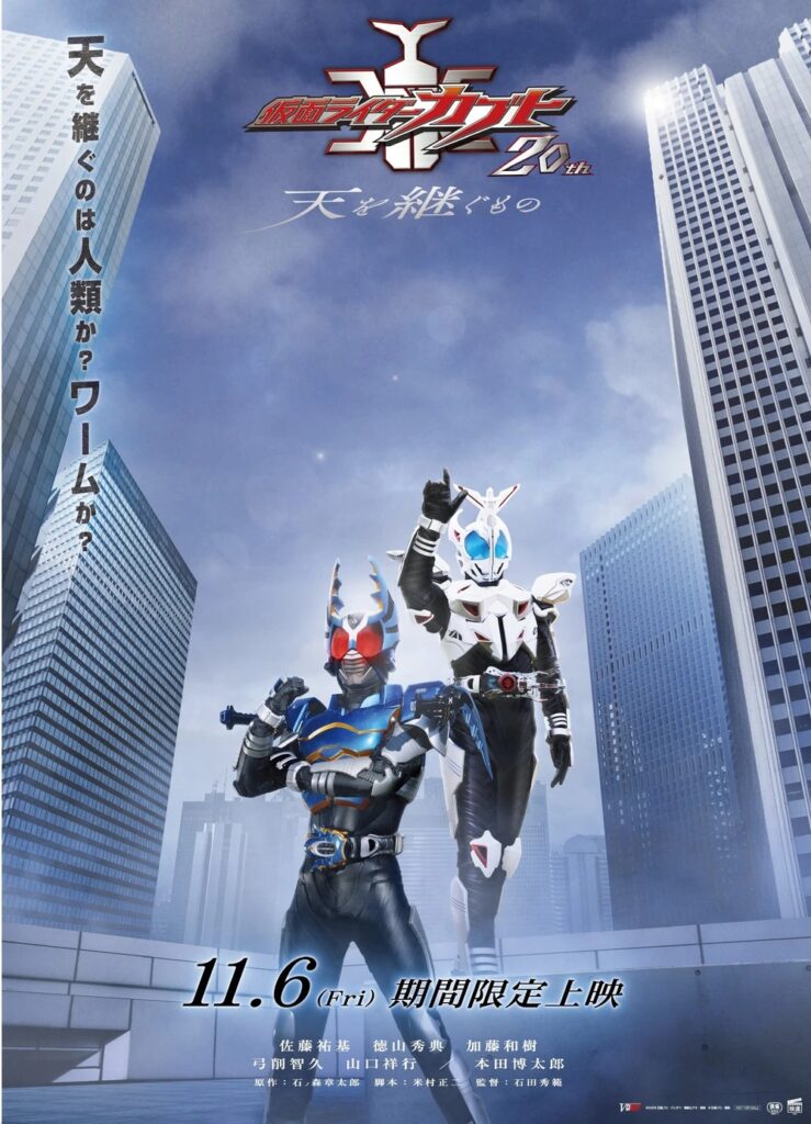 A Toei anunciou que Kamen Rider Kabuto ganhará um novo filme em comemoração aos 20 anos de estreia da série. O longa, que será um V-Cinext, tem o título, em uma tradução direta, Kamen Rider Kabuto 20th: O Herdeiro dos Céus (仮面ライダーカブト20th 天を継ぐもの, Kamen Raidā Kabuto Nijusshūnen: Ten o Tsugu Mono).