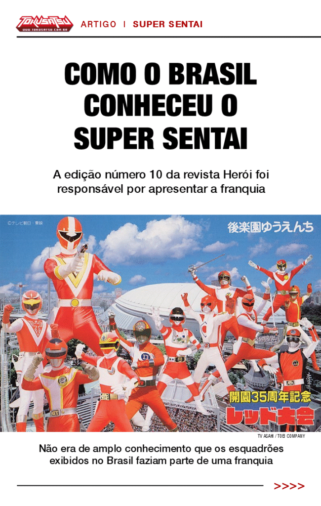Um artigo celebra as cinco década da revista japonesa Televi-kun, uma das mais conhecidas publicações voltada para as crianças sobre televisão, que sempre deu grande destaque às séries de tokusatsu. Também relembramos como a revista Herói apresentou a franquia Super Sentai aos brasileiros, nos fazendo perceber que Changeman, Flashman, Maskman e Goggle V faziam parte de algo muito maior.