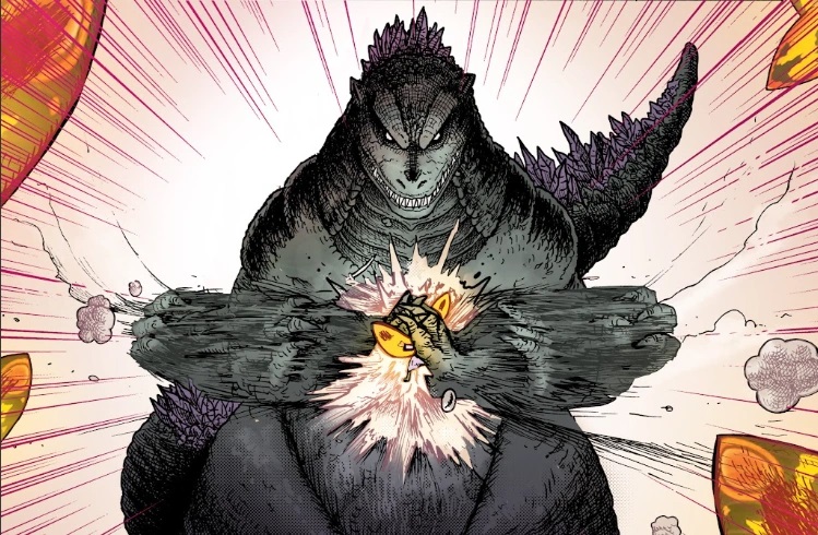 A terceira história, escrita por Ulises Farinas e Erick Freitas com arte de Buster Moody, leva a proposta para um campo mais simbólico. Godzilla enfrenta SpaceGodzilla em um cenário que mistura religião, destruição e poder divino, enquanto céu e inferno tentam impor controle sobre ele. A HQ apresenta o monstro como uma força independente, que rejeita tanto a autoridade celestial quanto a infernal. O conflito não está apenas nas batalhas, mas na ideia de que Godzilla não pertence a nenhum sistema moral ou espiritual, mantendo sua natureza de força da natureza que segue apenas seu próprio instinto.