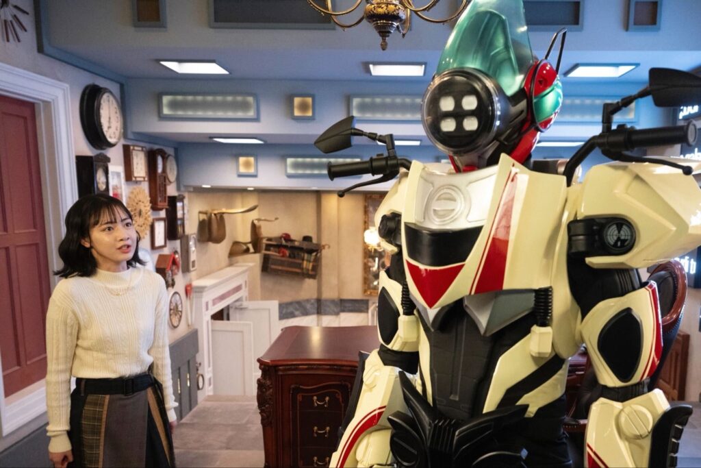 O ritmo é mais contido, porém denso. A direção aposta em atmosferas sombrias, silêncios prolongados e transições oníricas que reforçam a sensação de desconforto. A ação aparece no momento certo, mas o foco está claramente no desenvolvimento psicológico e no avanço da trama maior. Talvez, em muito tempo, eu não me sentisse assistindo a uma série de Kamen Rider, mas sim a uma produção que vai muito além de um herói se transformando para salvar o dia.