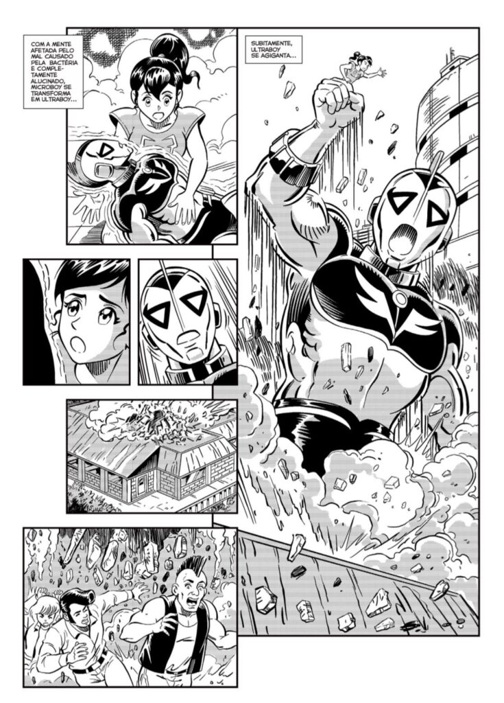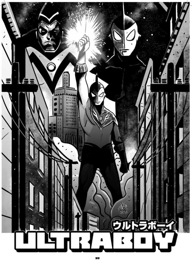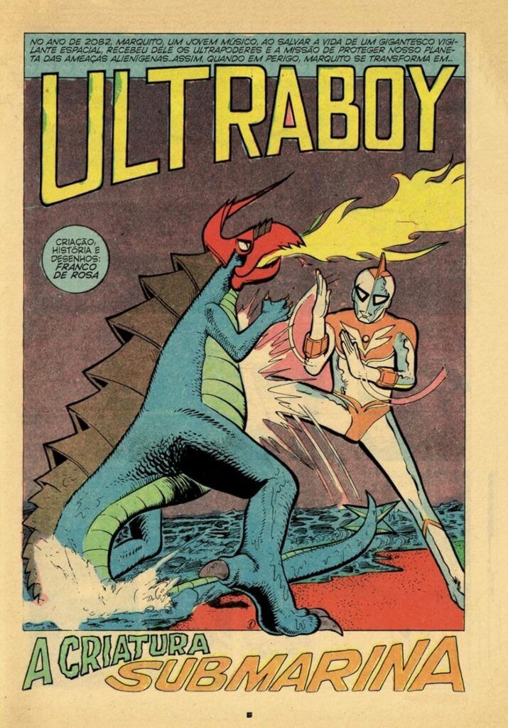 Publicado originalmente como uma aventura de 20 páginas, Ultraboy foi um dos primeiros mangás produzidos no Brasil, em uma época em que o estilo ainda era visto como nichado e até desacreditado no mercado. Inspirado claramente em ícones japoneses como Ultraman, Spectreman, filmes de kaiju e outros heróis espaciais, Franco de Rosa criou um personagem com identidade própria: brasileiro na essência, japonês na alma e universal no conceito.