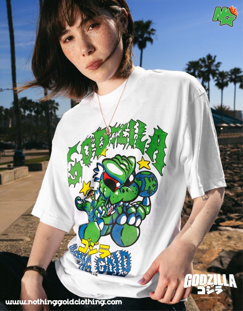A Toho International anunciou uma colaboração oficial com a marca de streetwear Nothing Gold Clothing para o lançamento de uma nova linha de produtos inspirados em Godzilla. A coleção reúne três itens exclusivos que já estão disponíveis no site da marca, voltados especialmente ao público interessado em moda urbana ligada à cultura pop.