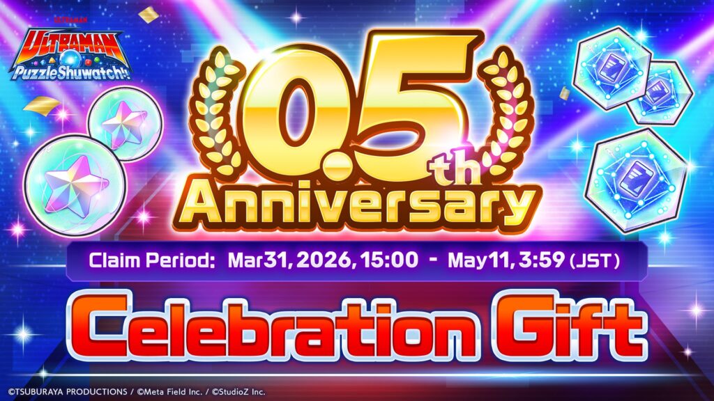 O jogo mobile Ultraman Puzzle Shuwatch!! iniciou, em 31 de março de 2026, sua campanha de 0.5th Anniversary (meio aniversário), marcando seis meses desde o início de seu serviço, ocorrido em outubro de 2025. A ação traz uma série de bônus, eventos e pacotes especiais voltados aos jogadores.