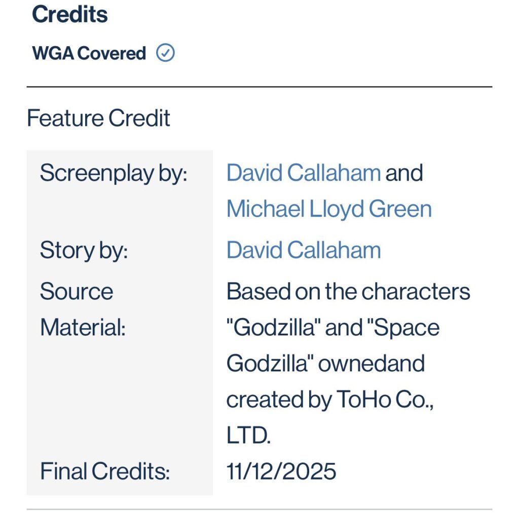 O Sindicato dos Roteiristas da América (Writers Guild of America – WGA) passou a listar oficialmente Godzilla x Kong: Supernova como um filme baseado em Godzilla Vs. Spacegodzilla (ゴジラvsスペースゴジラ, 1994). O WGA é o sindicato que representa os roteiristas de cinema, TV e streaming nos Estados Unidos, responsável por proteger direitos autorais, créditos, salários e registrar oficialmente obras e roteiros em produção.